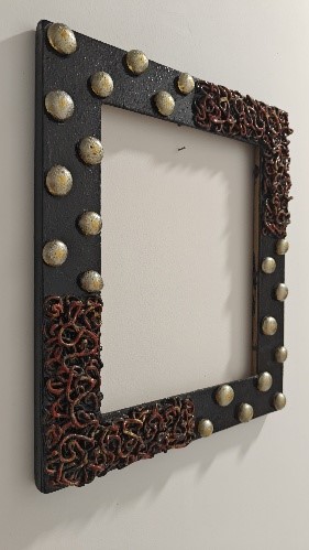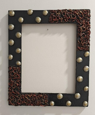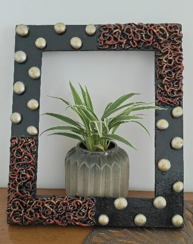 Photo frame featuring a ceramic and pebble mosaic, creating a one-of-a-kind look.